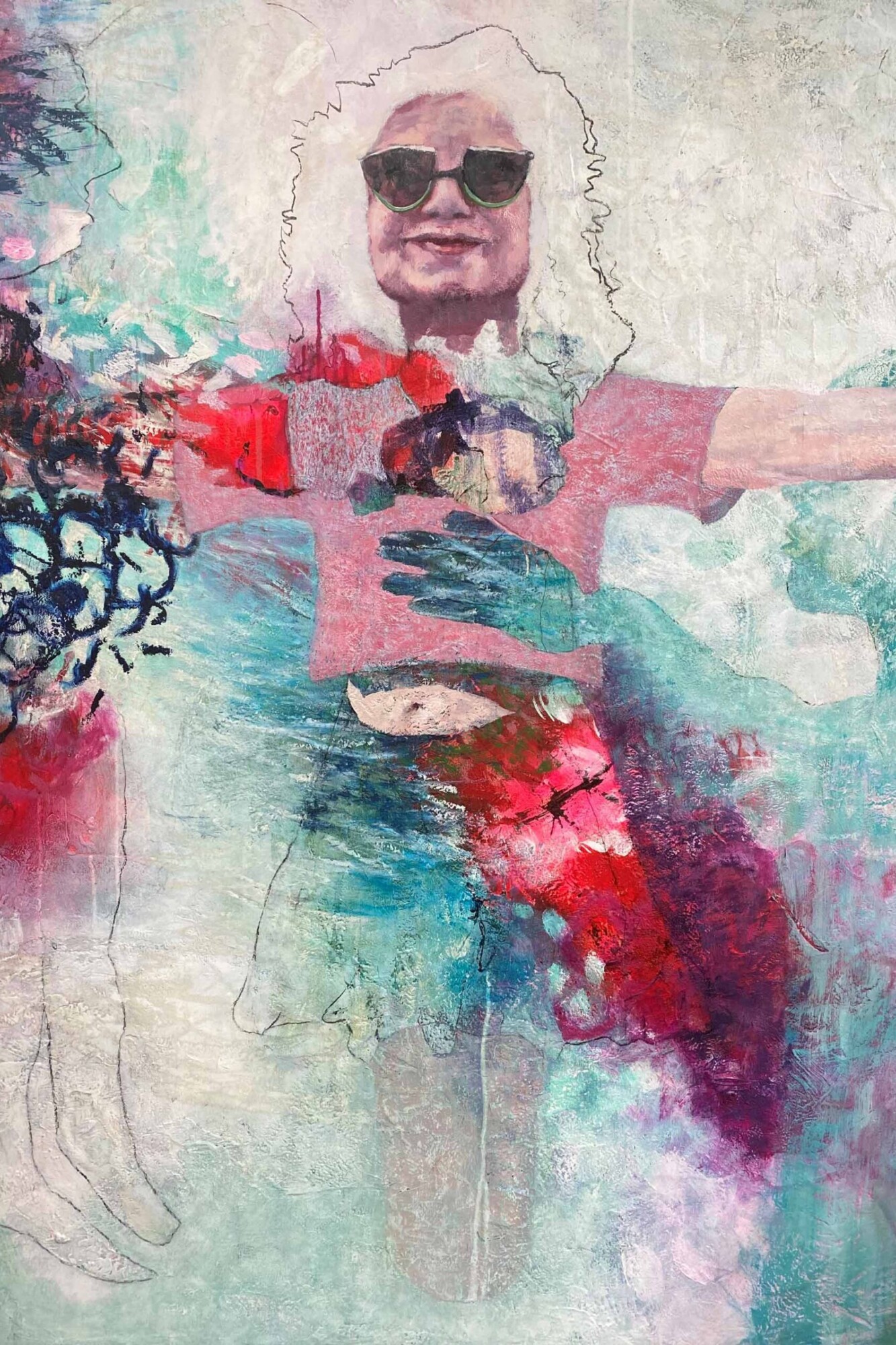 Looking partly submerged and yet holding her own, she treads water for all of us. Is she being helped or hindered?  Let loose or held down? Sacrificed or soaring?  But determined she is! Her head held high, powerful, but acknowledging the difficult currents surrounding the female spirit.