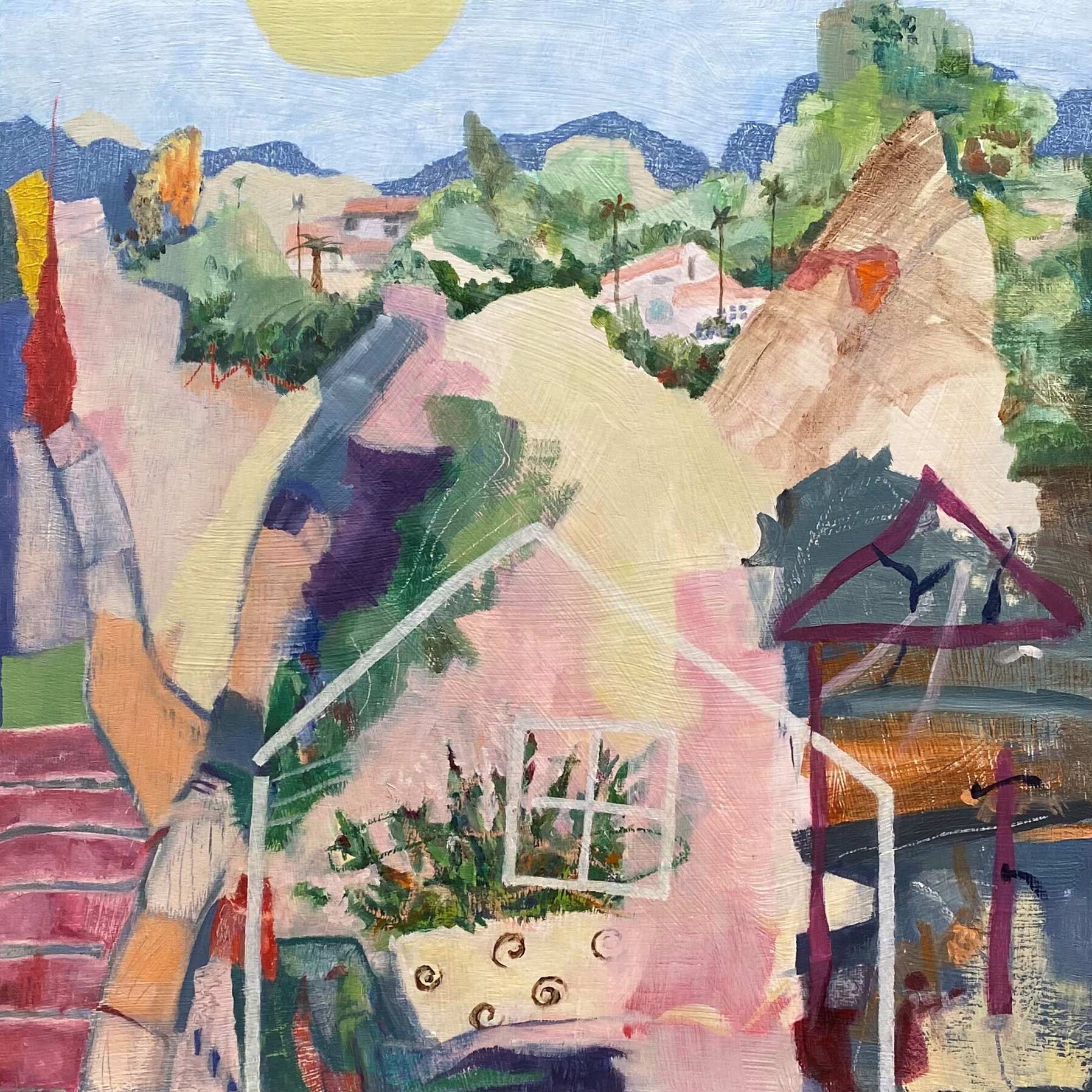 This abstract painting invites us to flow through the simple lines of this house and be magically transported into this canyon landscape.